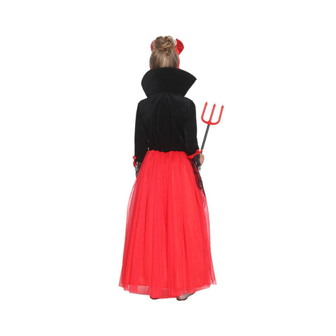 Disfraz de Diablita de Lujo para Niña con Vestido Largo y Cuernos