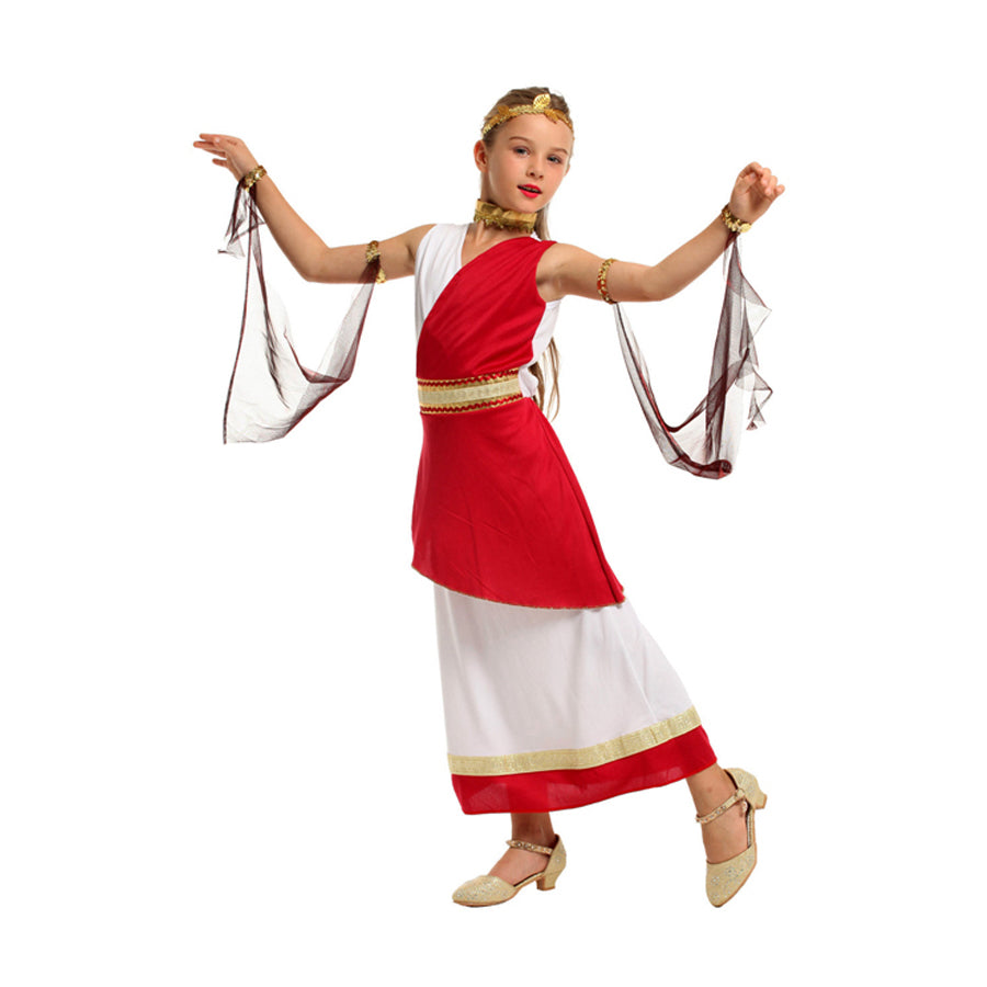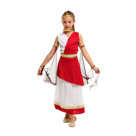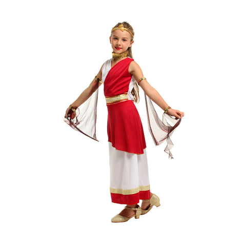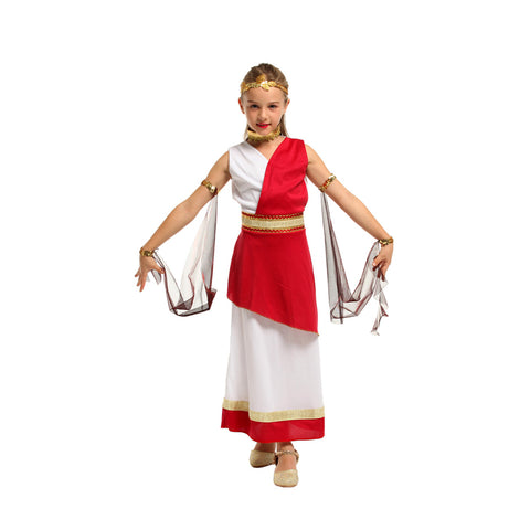 Disfraz de Diosa Griega para Niña con Vestido Blanco y Rojo – Inspiración del Olimpo