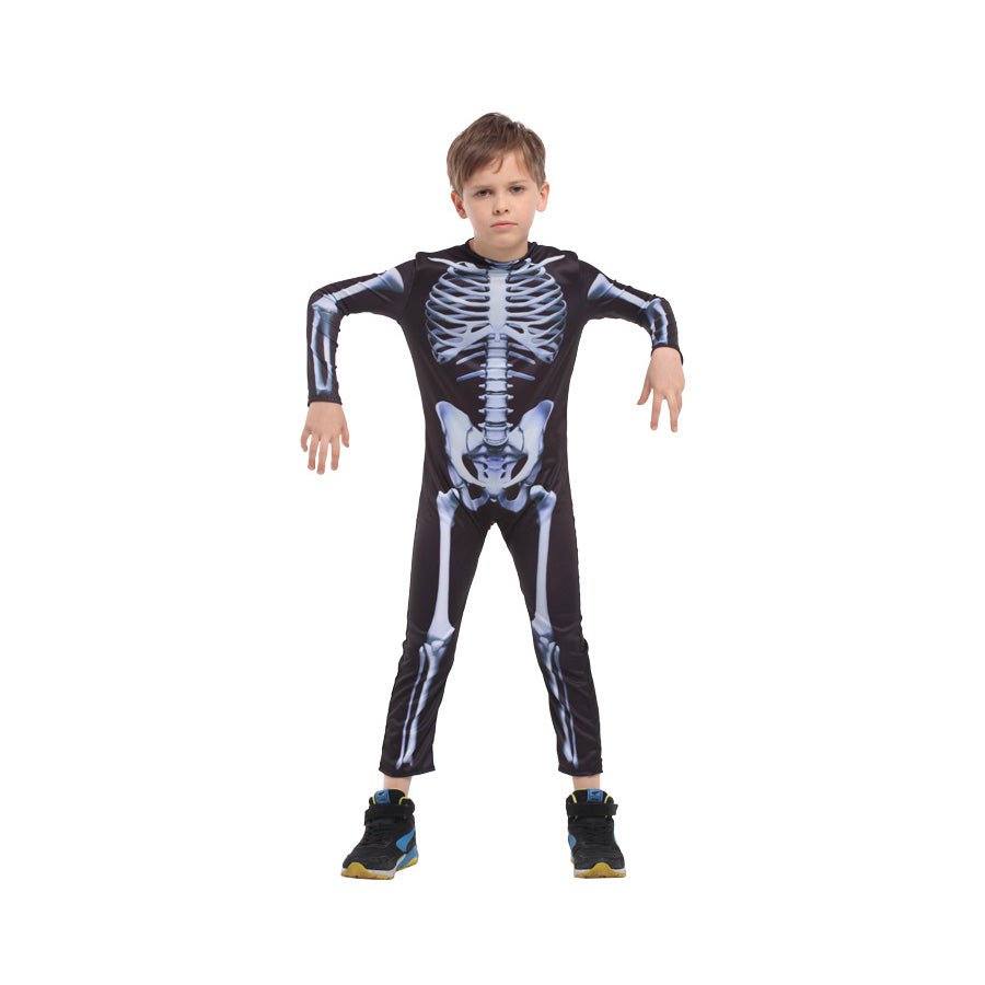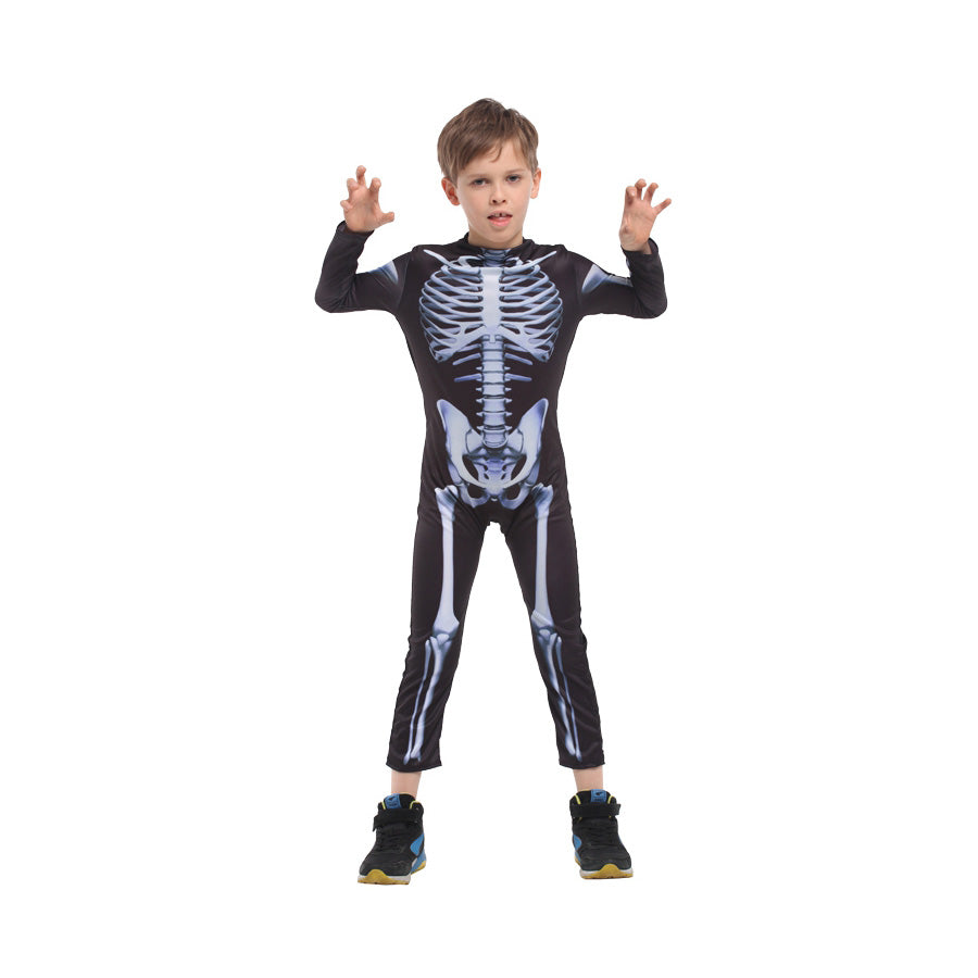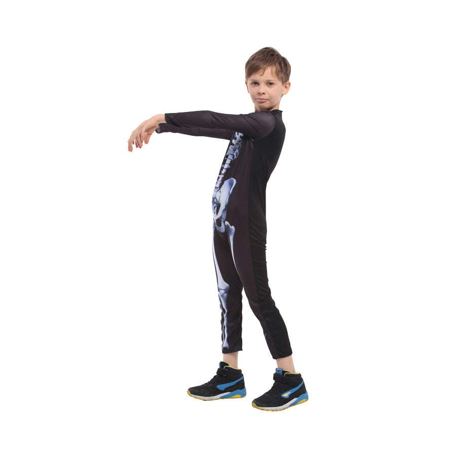 ¡Uno de los favoritos de siempre! Este disfraz de esqueleto es perfecto para niños que quieren lucir un look impactante y aterrador. Con un diseño de cuerpo completo que resalta los huesos con un efecto brillante, es ideal para destacar en cualquier fiesta de Halloween o evento escolar.