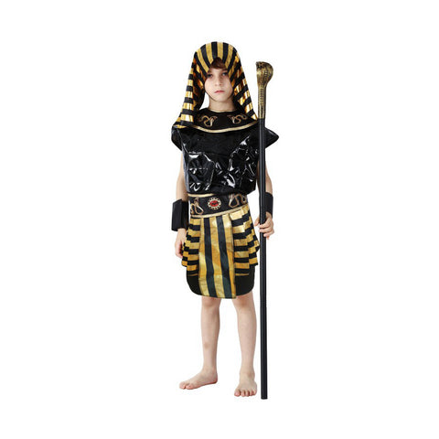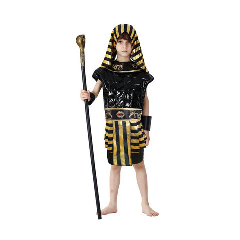 Disfraz Infantil de Faraón Egipcio con Tocado Dorado y Bastón