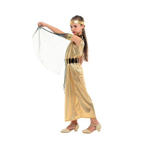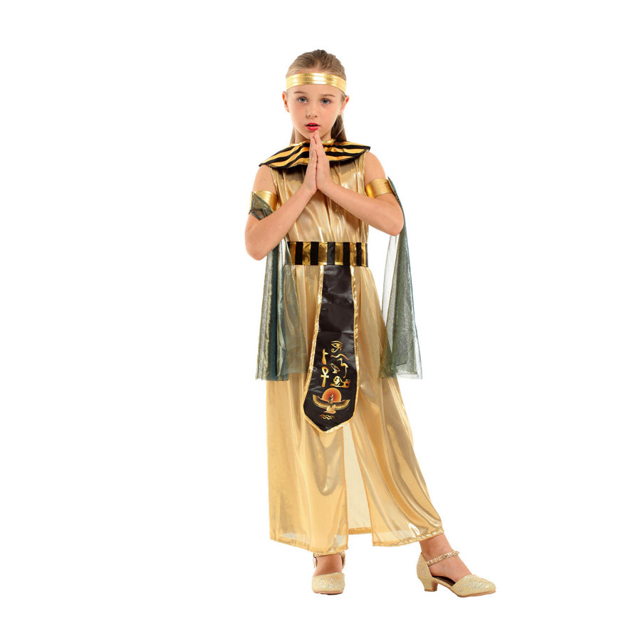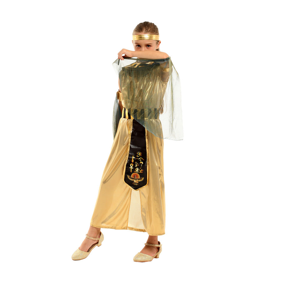 Conviértete en la reina del Nilo con este espectacular disfraz de faraona. Ideal para niñas que quieren destacar con un look majestuoso y lleno de historia en Halloween o presentaciones escolares.
