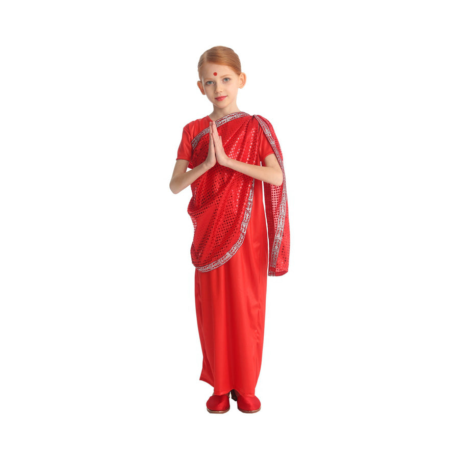 Disfraz de India Tradicional para Niña con Sari Rojo y Bindi